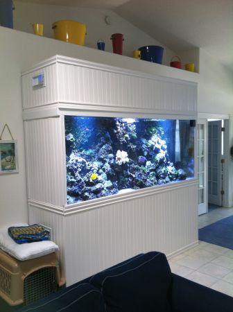 Putting the big tank up for sale. It is acrylic, 96.5″ long x 28.5″ deep x 40″ high. The entire back wall including the overflow is foam rock covered and turned out way better than I ever thought it would. The stand is 36″ tall and the canopy is roughly 24″ tall making for a grand total of just under 9 feet tall.
