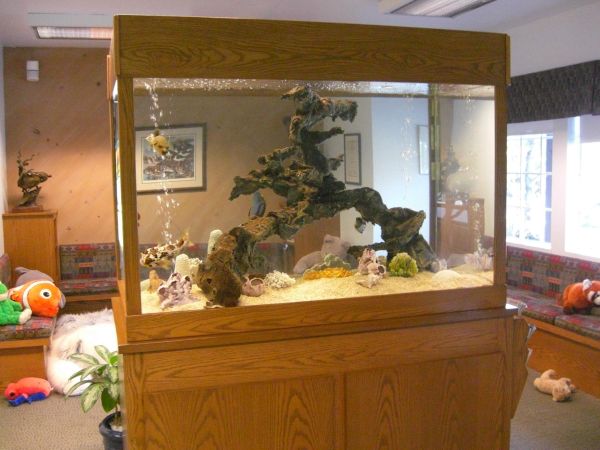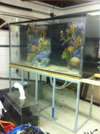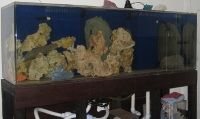 This Aquarium bar was finished with speechless metallic black granite tiles with black grout looks really classy . gorgeous santos mahogany hard wood all around not bs plywood stained or anything like that. the bar was custom built for my house and not too large for my apartment Unfortunatly and looking to use the space or something else . The bar was designed in a U shape to fit through any standard with door and was built right nice and sturdy to support the weight of the tank . It was was specially supported to house the 92 gallon panoramic fish tank inside . The whole bar was custom built around the tank so you see absolutely no hoses ,wires ,anything ugly it’s all hidden , the tank lights up 18 different Colors with a remote led operating system and a brand new fluval pump for a 250 gallon tank. Never once had any water problems or filtration issues in this tanks ecosystem. The bar top is all large granite tiles and the foot rest is and granites small tiles . Has a custom led light system that changes 18 colors . Wine rack the whole 9 yards, must come to see ,