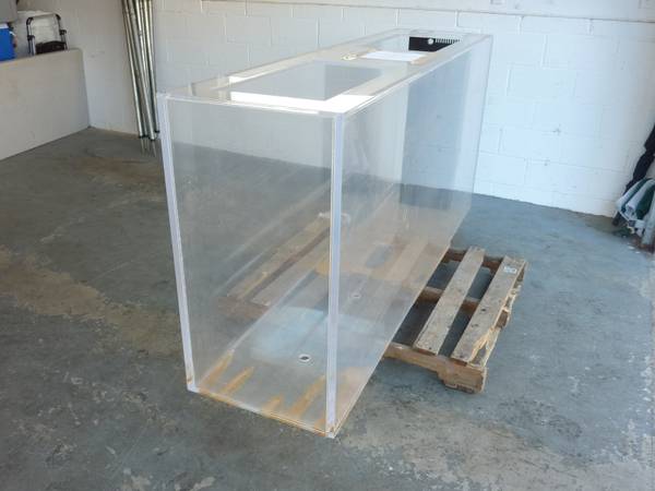 Up for sale is one used and in good condition Custom 350+ Gallon Salt Water / Reef Aquarium / Fish Tank. Tank was setup and used, but has been in storage now. Tank is custom drilled and inside filter chamber. Has few scratches and marks that can be buffed out and one corner that is scuffed up. No other major dings or gouges. Rigged for pumping and ready to be re-configured. This tank originally listed for over $3200. Part of surplus inventory from a Aquarium installation company.