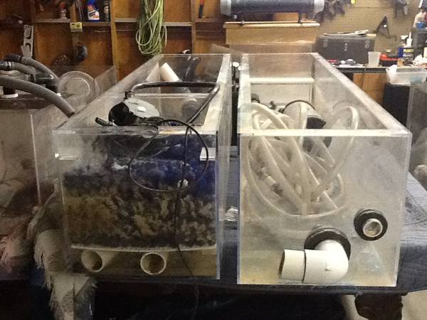 I have for sale a beautiful custom built 450 gallon acrylic aquarium. It is 8 feet long 3 feet wide and 30 inches tall. One inch thick acrylic all the way around the tank. Dual overflow in the back. This tank is an absolute beauty! No scratches and has been very well maintained. There is some coraline algae, but nothing that cannot be cleaned off. The tank by itself is $2800. I also have everything that you need to run the tank as well such as 3 1/3 hp pumps, 3 large sumps. One 180 gallon sump. Two 50 Gallon sumps and one 40 gallon sump, all are acrylic. Bio balls, 4 Hamilton 250 W metal hallade lights. 2 G-5 Skimmers and the skimmer pumps. Also almost new 1 hp Artica JBJ chiller with an electronic controller. I have tons of other equipment i can throw in as well. Tank with everything is only $4000. If you have any questions feel free to send me an email or a txt @ five six two 8521519