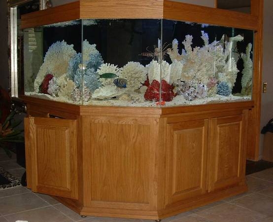 1. Tank, Stand (with cabinets) Canopy, rocks, coral skeletons/decorations and sand – $3,000