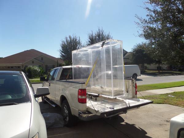 Tank is 300 gallons (64l x 36h x 30w). It is 2 sided viewable acrylic aquarium and was a custom install. It was $13,000 to install, asking $6000 obo and that includes installed at new location. I will break it down, move it and set it back up.