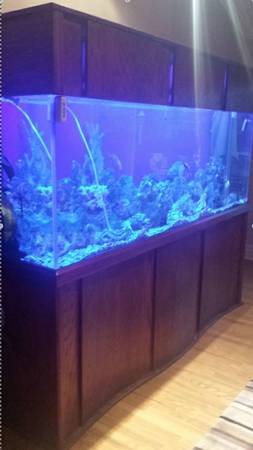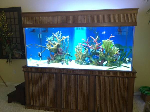 If you have ever wanted an aquarium that is a true showpiece, this is it, and what a great deal! This is a HUGE, custom built, complete salt water aquarium, with a beautiful custom-made bamboo and hardwood cabinet made by a fine furniture maker, ready to be moved from my house to yours! Included in the sale is all equipment, coral inserts and fish.