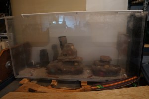 Accessories: 3 sets of LED Lights, Dual Filtering Systems, Pumps, Metal Stand, Cabinetry, 6 Heaters, Plants, 1,200 lbs. of Holey Rock, and 450 lbs. of substrate.