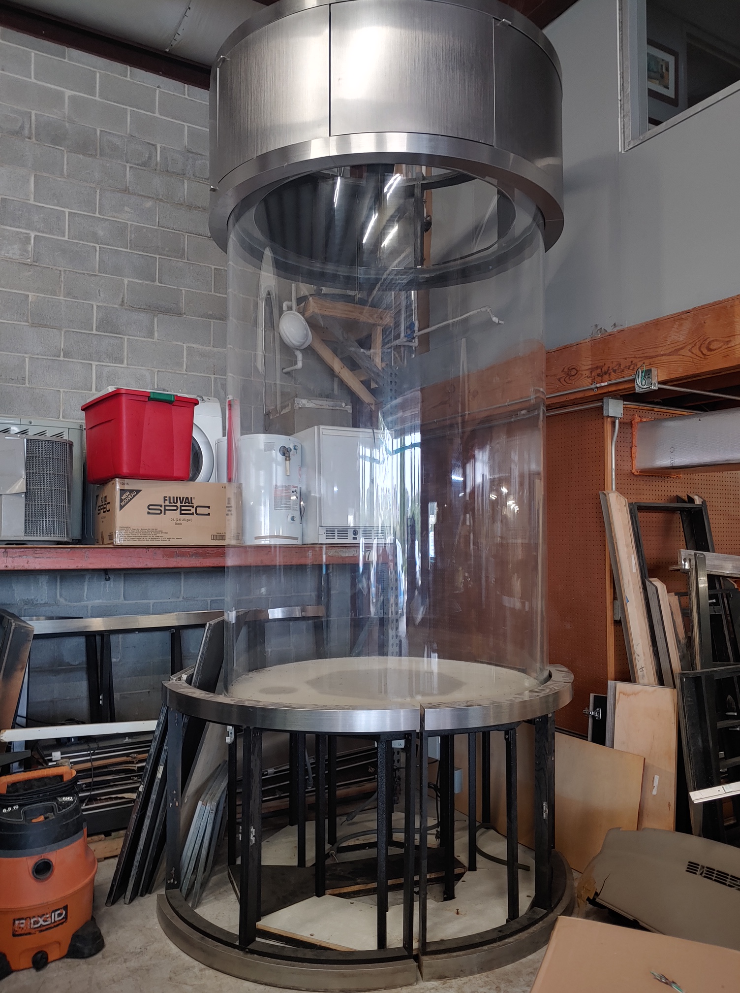 8’x8′ cylinder, recently polished with stainless steel stand-$29,999.