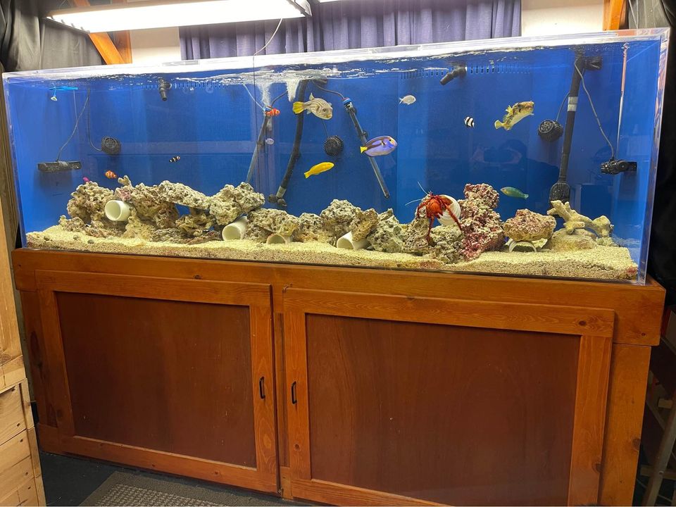 300 gallon tank 6×3 comes with pumps power head heater skimmer sump and 2 kessil 360 lights rock and sand want out of hobby tank is about a year old. You move!