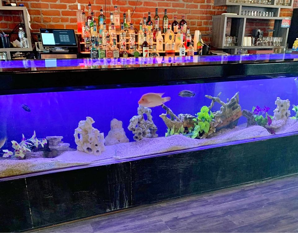 A’LURE Aquarium Bar: beautiful aquarium that was made to be the bar. 300 gallon, custom made 14’ long, 3 ‘ wide, 26” deep, with platform 46” deep. Filtration system, sand, fish, ship, vac all included, 10k.