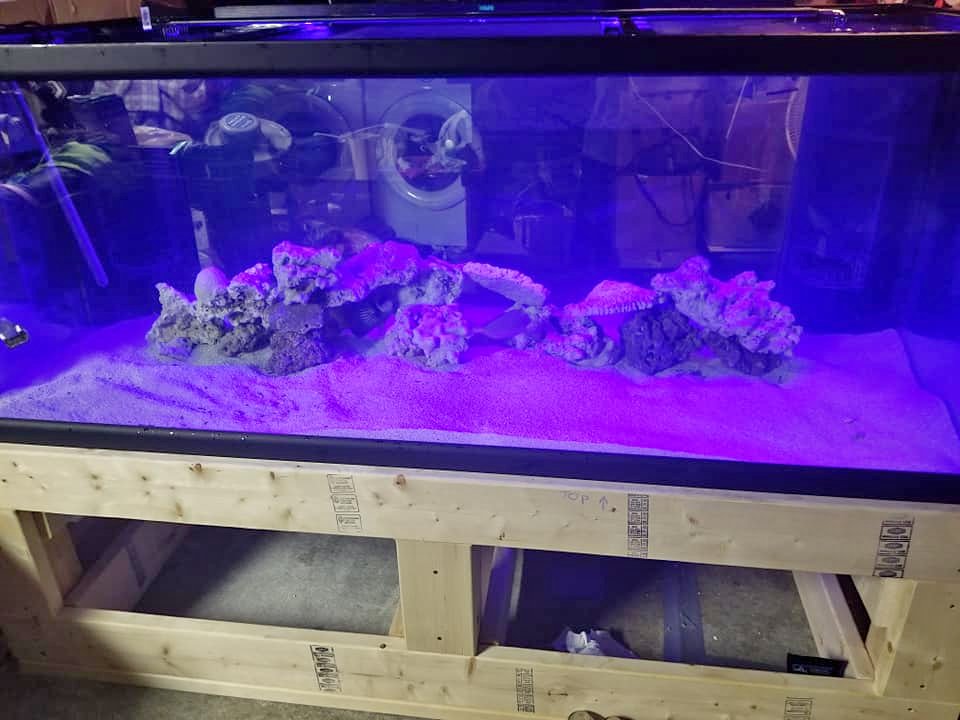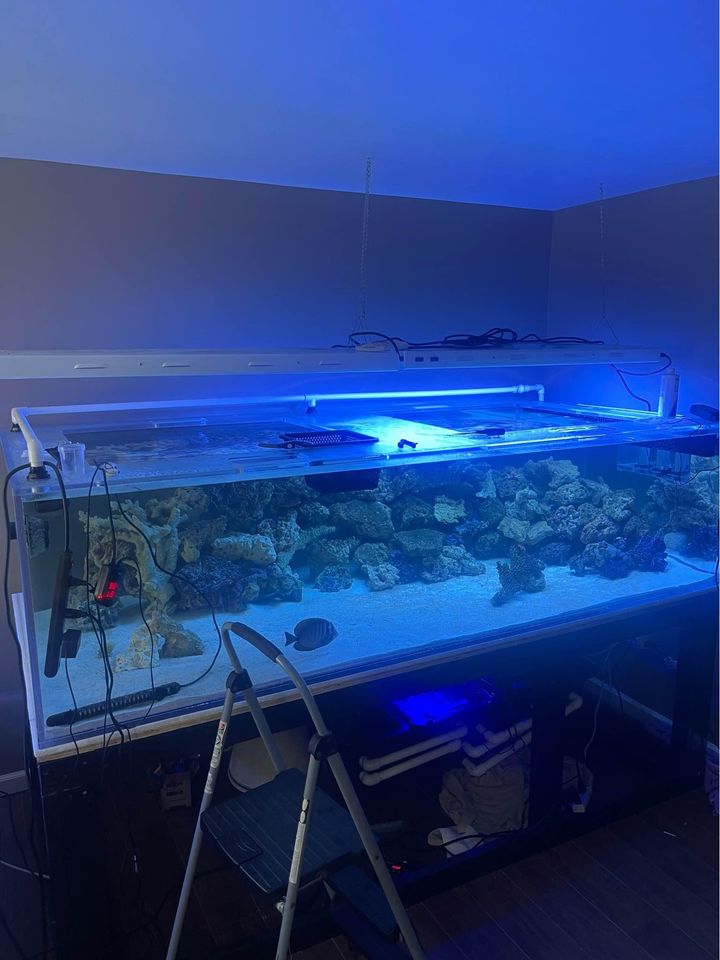 Kicking around selling my 480 gal reef tank. Looking to maybe downsize the main display that has been up and running for little over 2 years. Had no issues with it, but wanting to focus on more of my frag systems. Tank does have some slight scratches, but with it being acrylic, they can be easily fixed with light sanding and polishing. When filled with water they aren’t noticeable. Also has 1/2” square pieces of acrylic stock that lines the bottom of the tank. That was done by previous owner. Tank will need to be removed from my home so please bring help to move the tank. What is included: 96″-48″-24″ tank, stand, two- 8 bulb t5 light units, all plumbing. If bought at asking I can include the return pump and gyre power head and skimmer and sump system. If buyer would like it. Any of the “fake” items in the tank can be offered at a severly discounted rate depending on what is wanted…