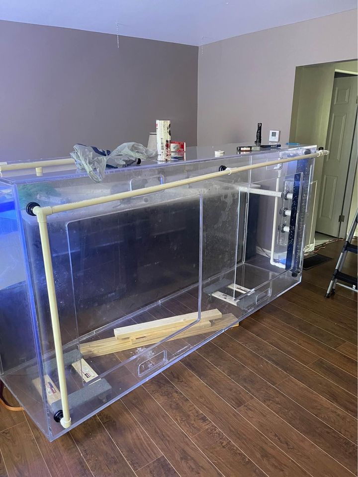 Have a 480 gallon acrylic aquarium. You’re welcome to the stand as well but it will have to be dismantled to get out of my house. I have a home made sump, shop lights, and a couple heaters ( 800w and 500w) that goes with it. I also have 4 WC severums and 4 WC Crassipinis Oscar’s. Can get more pictures. Pretty firm on price So people will quit asking it’s a standard 480 gallon. It’s 96x48x24” LxWxH. I’m located in Chesapeake OH