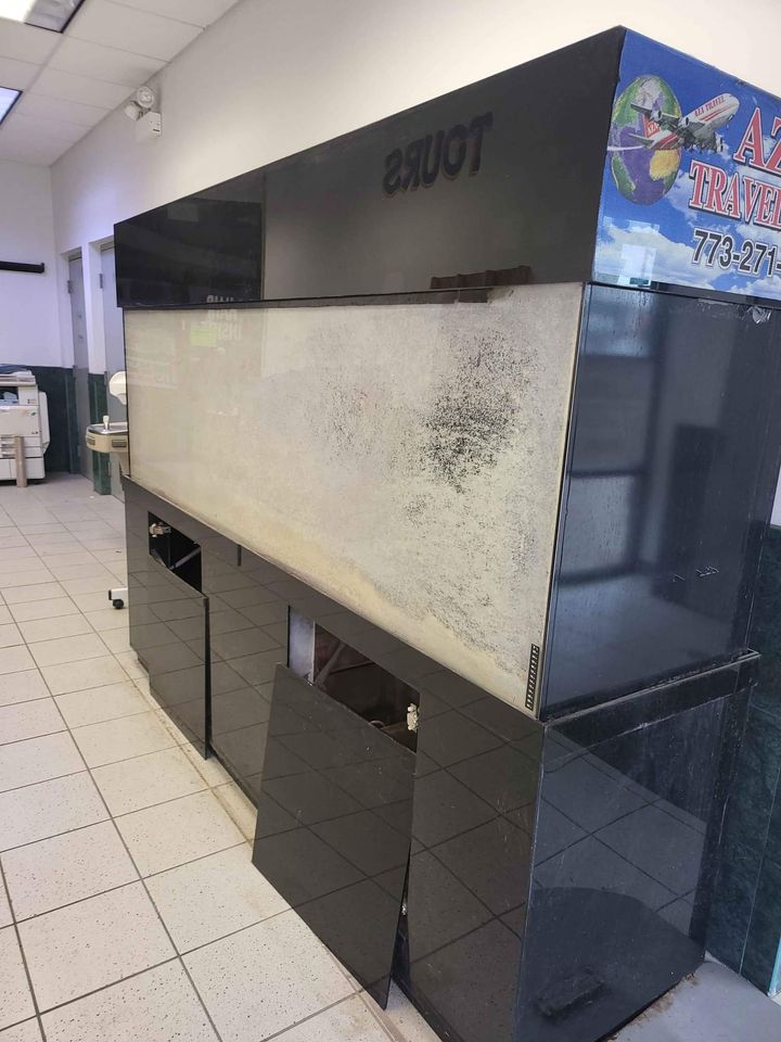 Tank Dimension L100 W24 H40 over all H 78. Estimate 400 Gallons (L x W x H ÷ 231 = Gallons) Been sitting over a year.. Need deep clean.. As It.. Please don’t ask Condition of tank …plus still available….. Come and pick up at Zip 60640. Best…Pending!