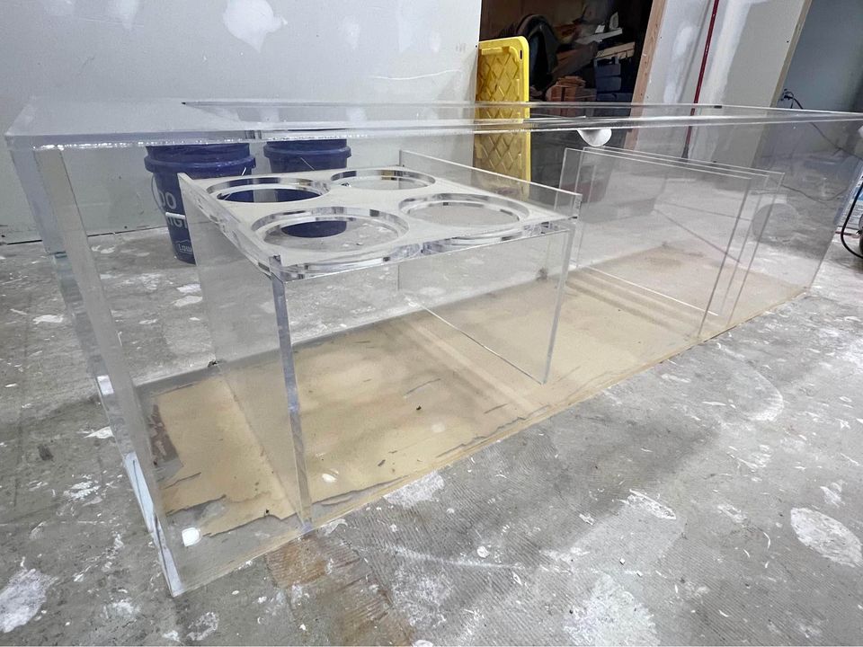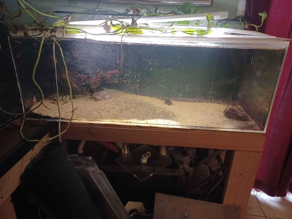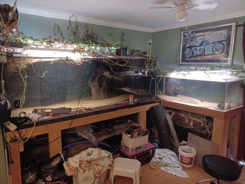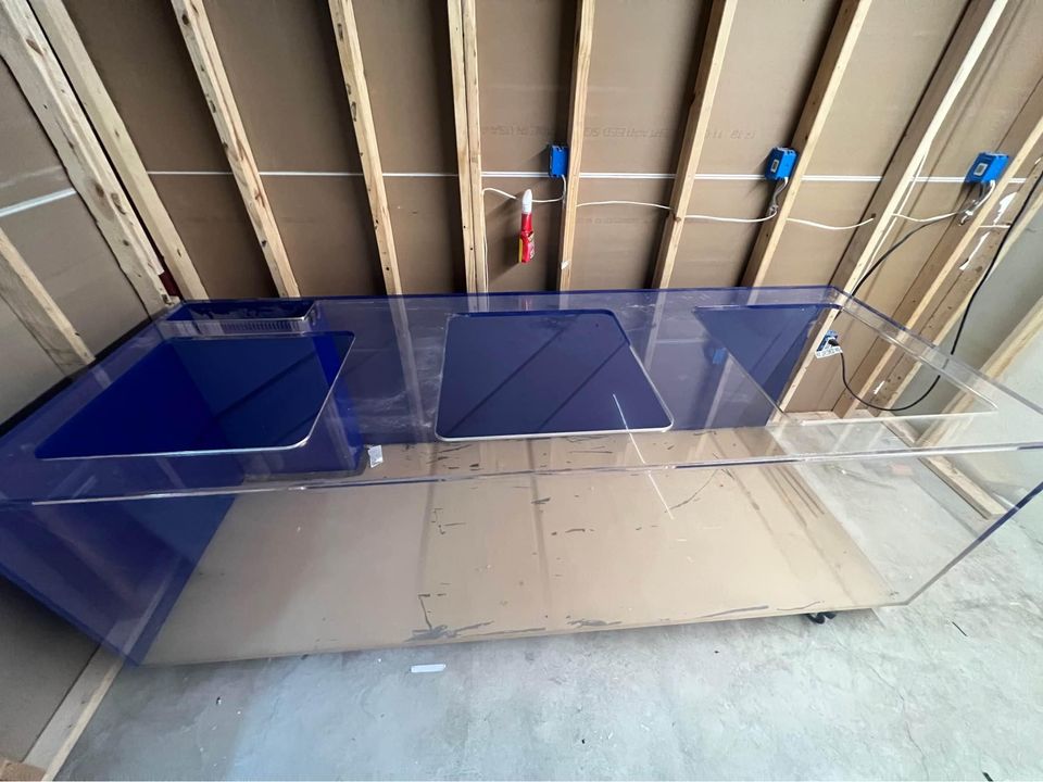 300 acrylic tank with 100 acrylic tank and all sumps/pumps stands and associated equipment. Acrylic is 96″ × 30″ x 24″ and 3/4″ thick acrylic with dual back overflows. Was always freshwater from new so no coral or salt issues. 100 is 24x48x18 sumps are also acrylic. Pics later this week . Still currently running to show no issues. Will need at least 3 people to remove its heavy. Comes with stand and everything. Facebook Marketplace!