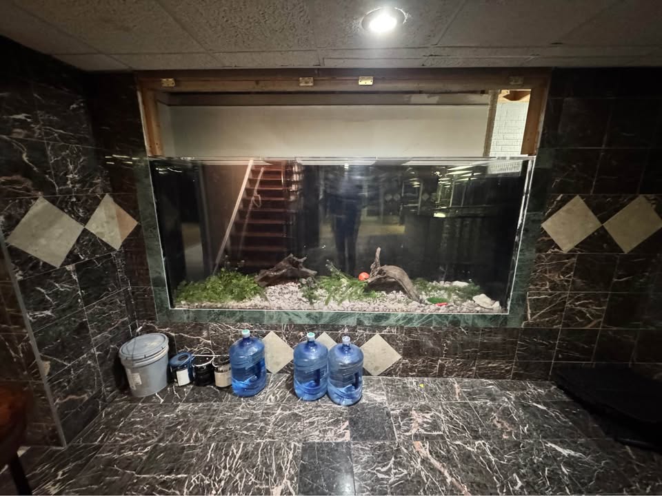Huge custom aquarium for sale. This tank measures 9 feet long x 4 feet tall x 2 feet deep and holds approximately 540 gallons of water. It’s a serious, display-grade tank that was professionally installed and built into the wall. The aquarium includes a built-in rear filtration/sump system located behind the wall (see photos). Plumbing, pump, and filtration components are already set up, making this ideal for someone experienced with large tanks, reef systems, or monster freshwater fish. Details: • Approx. 540 gallons • Glass aquarium • Built-in wall installation • Rear filtration / sump system • Large viewing window • Heavy-duty setup – not a standard standalone tank Important Notes: • Buyer must remove the tank (and filtration equipment) themselves • Will require multiple people and proper equipment • Sold as-is • What you see in the photos is what’s included • Access is through the basement area shown (walk out and we can maybe help you load it up) Perfect for a hobbyist, business, or anyone looking for a truly massive aquarium at a fraction of the cost of new. Message me if interested or if you have experience moving large tanks.