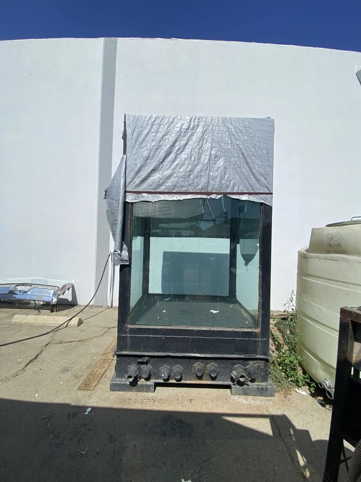 1631 Gallon Acrylic Water Tank on Steel Base w/ Slides Large 13′ tall 1631 Gallon Acrylic Water Tank with Steel Base featuring a steal industrial grade base with the styling of such to boot. The tank has 2″ thick acrylic walls fixed to a metal frame. The tank is over 8,000 pounds and features skids for easy moving with a forklift. Condition: This Prop shows signs of paint loss and wears, being a formal prop rental. It is fully functional and comes with pumps and filtration for use on set or personal use. Please feel free to write us with any questions or requests. This item is SOLD AS-IS and is for LOCAL PICKUP in Van Nuys, California. We can help arrange to ship if needed simply sent us a message for a quote. Please make sure to have a large truck for pickup as this piece is very large. This auction includes an item that is a formal prop rental for the movie industry and will show signs of wear and tear from years of use and service. Measurements 13′ Tall X 64″ Wide X 52″ Deep